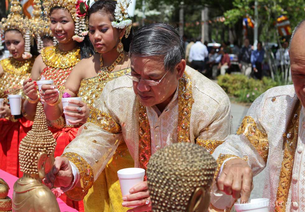 Lễ hội té nước Bom Chaul Chnam diễn ra vào khoảng giữa tháng 4 dương lịch. Lễ hội có nguồn gốc từ xa xưa, khởi nguồn từ mong ước mừng một mùa lúa thu hoạch bội thu.