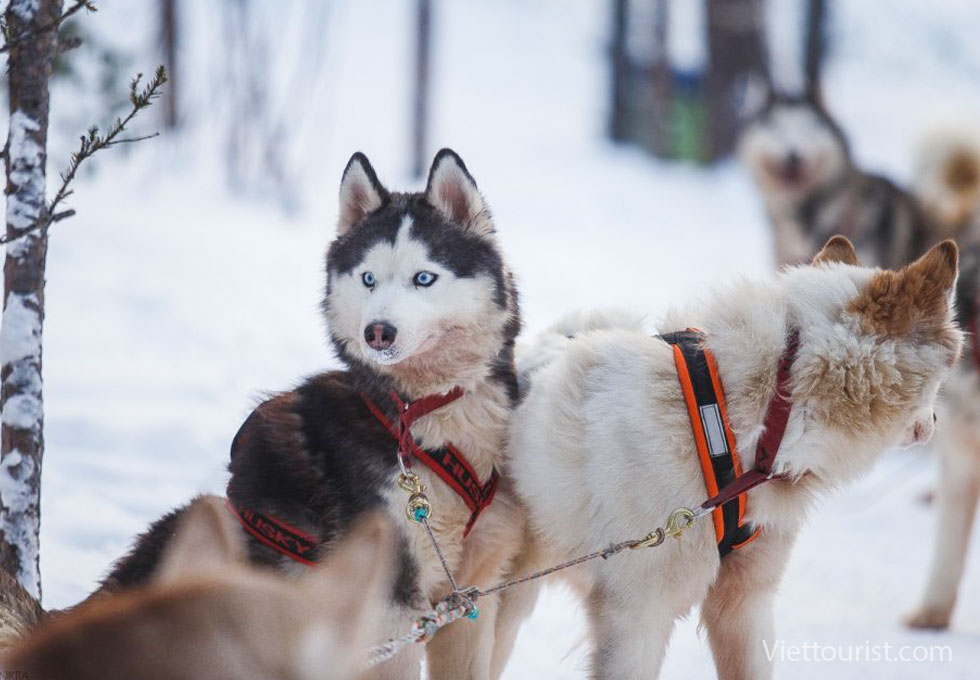 Husky là giống chó nổi tiếng của vùng Siberia, được người dân bản địa nuôi để phục vụ việc vận chuyển trên tuyết từ hàng trăm năm trước. Với thân hình rắn chắc, bộ lông dày và sức bền phi thường, chúng có thể kéo xe hàng chục cây số giữa nhiệt độ âm hàng chục độ C mà vẫn tràn đầy năng lượng. Mỗi đàn thường có từ 6–10 con, được huấn luyện kỹ lưỡng để phối hợp nhịp nhàng, tạo nên hành trình trượt tuyết vừa mạnh mẽ vừa đầy cảm xúc.