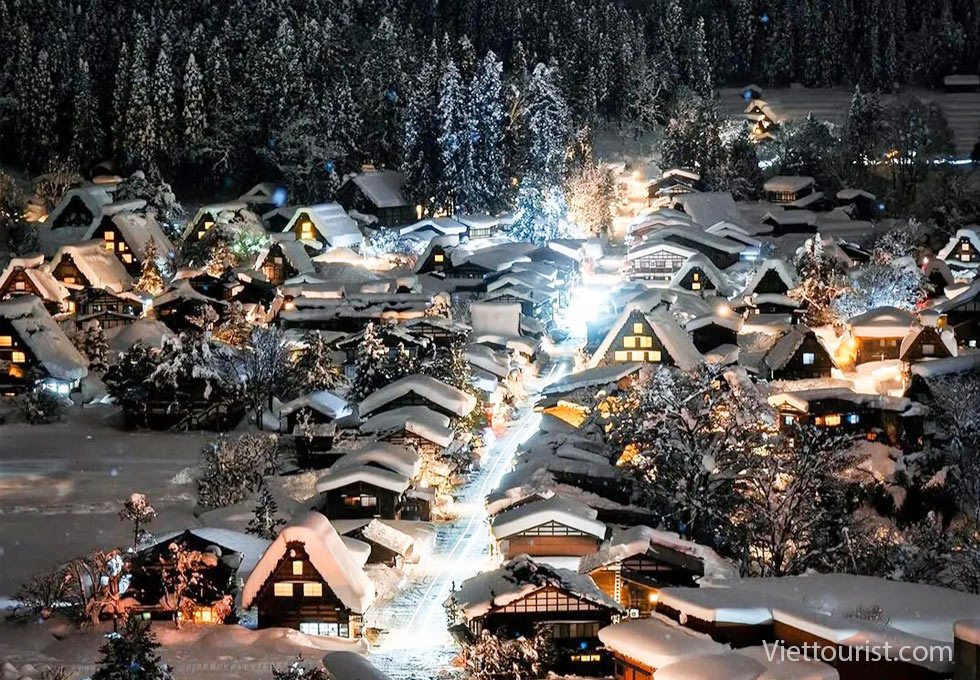 • Shirakawago: làng cổ UNESCO đẹp nhất Nhật Bản, mùa đông phủ tuyết, mùa thu lá đỏ rực rỡ.