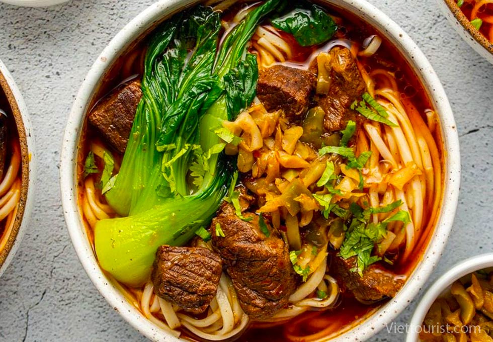 Mì bò, bánh bao, đồ ăn vặt đường phố.