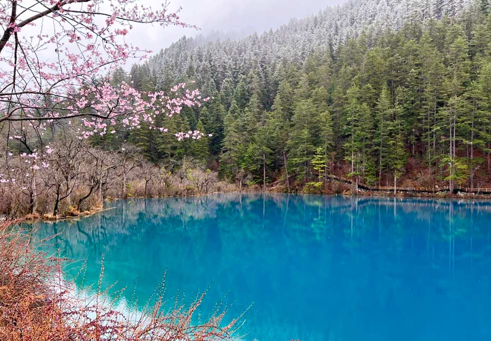 Người ta thường mải mê với sắc vàng đỏ đại ngàn của mùa thu Cửu Trại Câu mà quên mất rằng, nơi đây còn có một mùa xuân dịu dàng đến nao lòng. Đó là khi những tia nắng ấm áp đầu tiên khẽ chạm vào mặt hồ còn đang đóng băng, cũng là lúc những nụ đào rừng e ấp bắt đầu thức giấc sau một kỳ nghỉ đông dài.