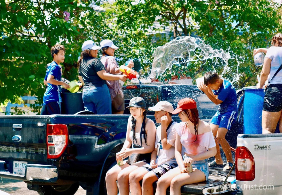 Địa điểm tốt nhất để tham gia vào những “cuộc chiến ướt át” này là ở phố Khao San, Bangkok. Nếu bạn đến đây, hãy chuẩn bị tinh thần để bị ướt nhẹp từ đầu đến chân với nước lạnh khi mọi người phun nước lên bạn từ cả bốn phía. Như người ta thường nói, nếu đánh không lại đám đông thì bạn nên gia nhập đám đông luôn! Hai bên đường là những quán bar, phố Khao San trong lễ hội Songkran trở nên sôi nổi hơn bao giờ hết.