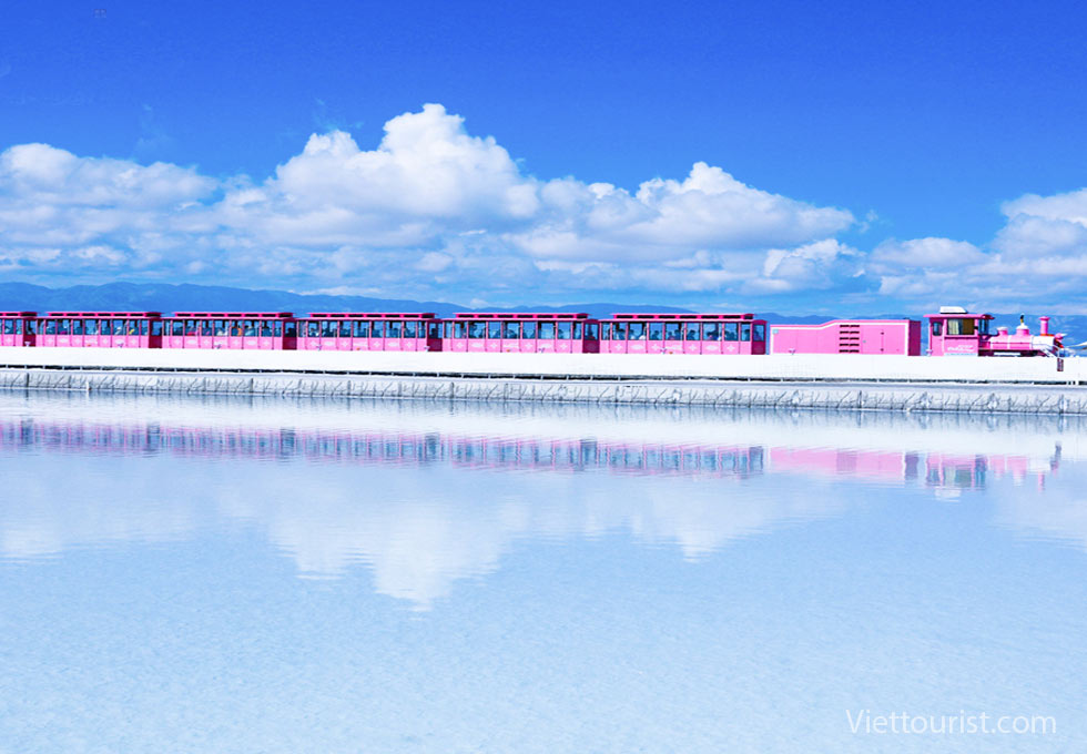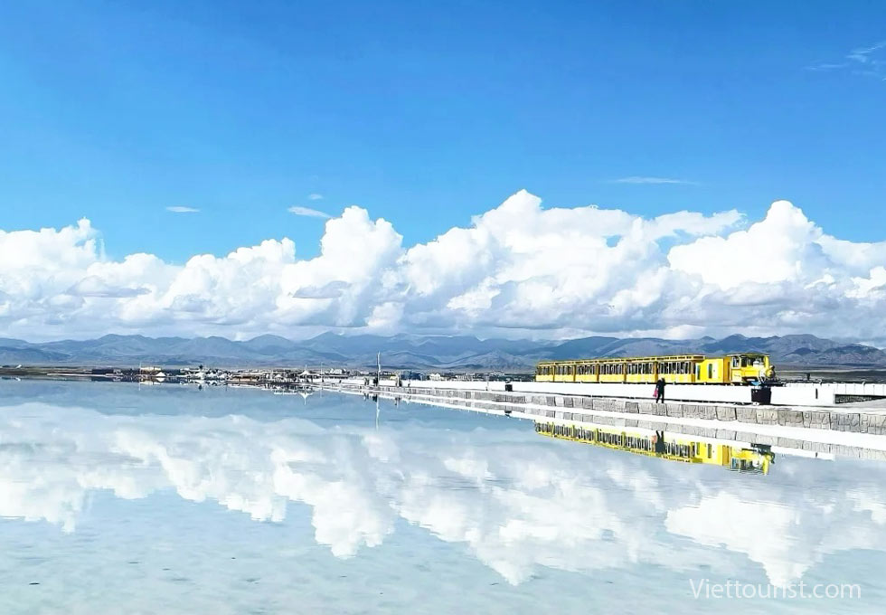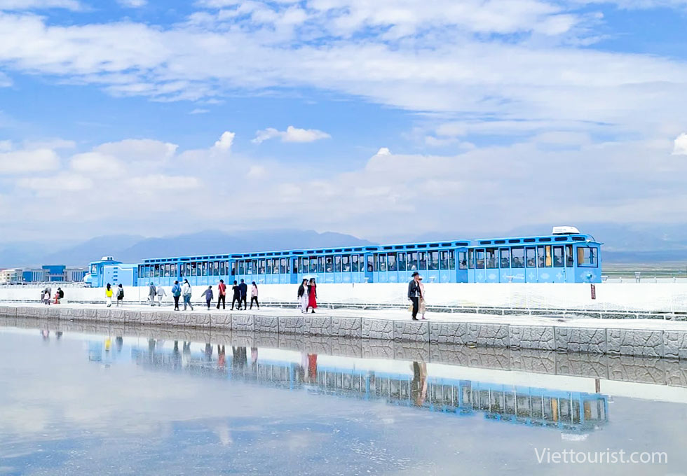 - Tàu điện và khu vui chơi “Sky No.1”: Ngoài cảnh quan tự nhiên, khu vực hồ còn có tàu điện đưa du khách ra giữa hồ, nghệ thuật điêu khắc muối, cầu trượt nước và biểu diễn dân gian hấp dẫn.