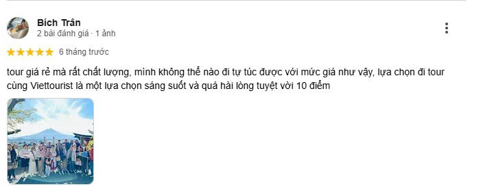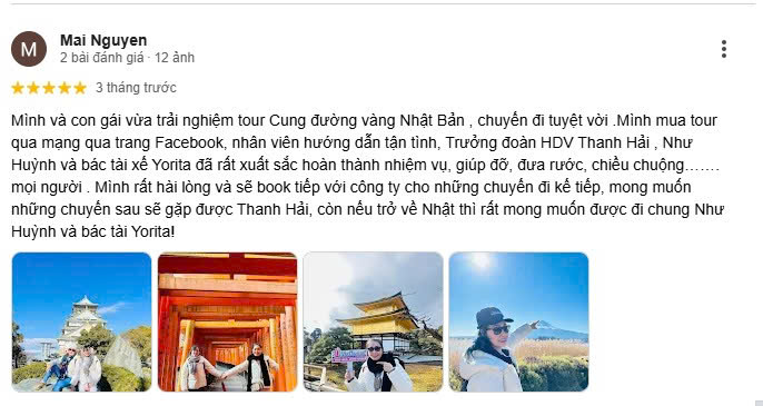 Với phương châm luôn đặt sự ưu tiên của Quý khách hàng lên hàng đầu, Viettourist luôn không ngừng nỗ lực và ghi nhận những ý kiến, đóng góp của khách trong mọi chuyến đi. Sự tin tưởng và ủng hộ của Quý khách chính là động lực lớn lao để Viettourist không ngừng mang đến những trải nghiệm du lịch tuyệt vời nhất. Hành trình khám phá Nhật Bản cùng Quý khách hàng cũng đã để lại nhiều dấu ấn khó quên đối với công ty chúng tôi, đặc biệt là những feedback chân thật nhất sau mỗi chuyến đi.