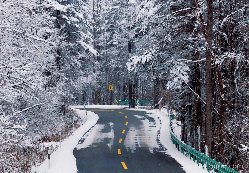 Rừng nguyên sinh 4 mùa khác biệt - Rừng nguyên sinh rộng hơn 70 km² với độ chênh cao đến 6.000 m tạo nên các tầng khí hậu khác nhau. Tản bộ qua con đường núi quanh co, du khách sẽ bắt gặp rừng tre xanh mướt, cây cổ thụ hàng trăm năm và thảm hoa dại đầy màu sắc – đặc biệt rực rỡ mỗi mùa thu.