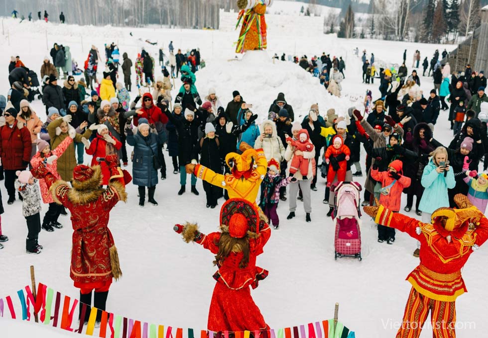 Không khí Maslenitsa tràn ngập những tiếng cười, âm nhạc, trò chơi ngoài trời và những bữa tiệc bánh kếp nóng hổi giữa thời tiết lạnh giá.