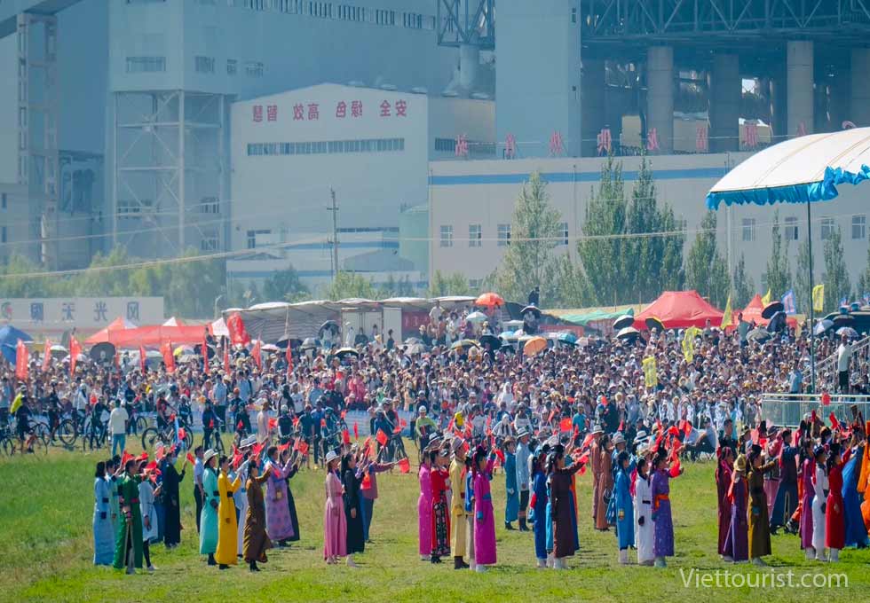 Trong lễ khai mạc, những chú ngựa và người cưỡi ngựa, cung thủ và đô vật đều được giới thiệu với đám đông, trong khi các vũ công biểu diễn điệu biyelgee (điệu múa truyền thống của Mông Cổ) trong khi các ca sĩ thể hiện tài năng và lòng yêu nước của mình để chào mừng sự kiện này.
