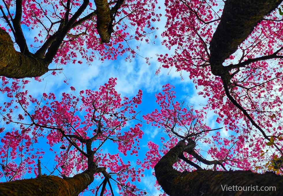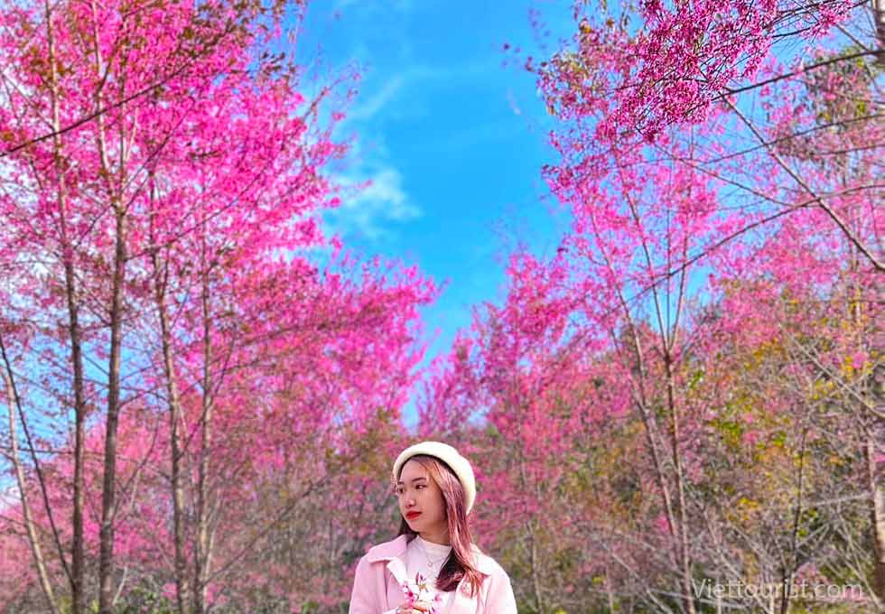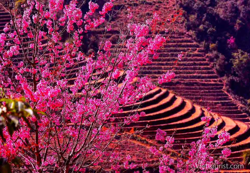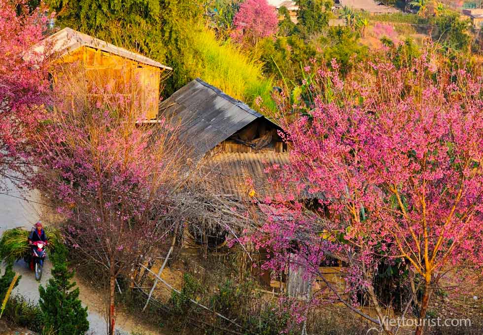 Trong hành trình này, du khách sẽ được lạc bước giữa những cánh rừng hoa Tớ Dày nở rộ tại Trống Tông, Háng Gàng hay khu vực quanh khu nghỉ dưỡng Garrya Mù Cang Chải. Sắc hoa hồng phớt trải dài trên nền núi non hùng vĩ tạo nên khung cảnh vừa nên thơ vừa ấn tượng.