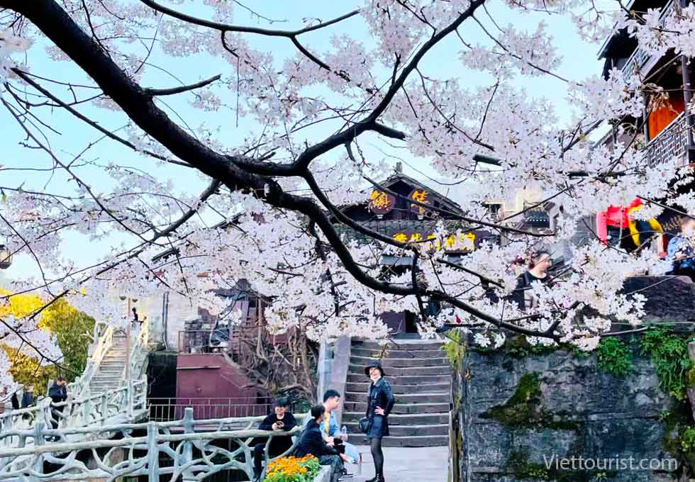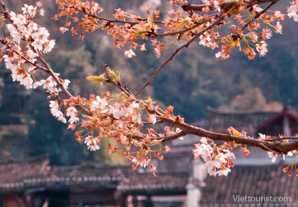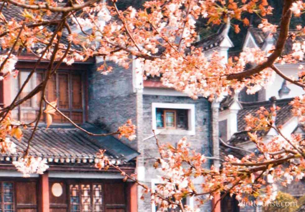 Khu vực ngoại vi trấn cổ Nếu có thời gian đi xa hơn một chút về phía ngoại ô, du khách sẽ được chiêm ngưỡng những rừng đào nở rộ trên sườn núi, nơi có không gian thoáng đãng và tĩnh mịch hơn hẳn khu trung tâm.