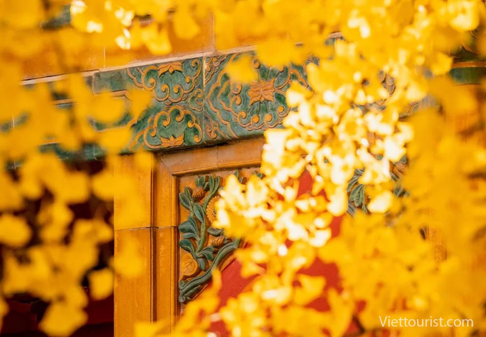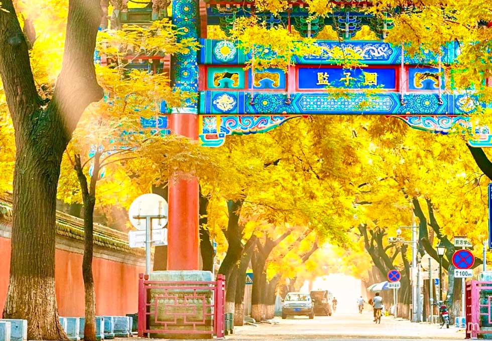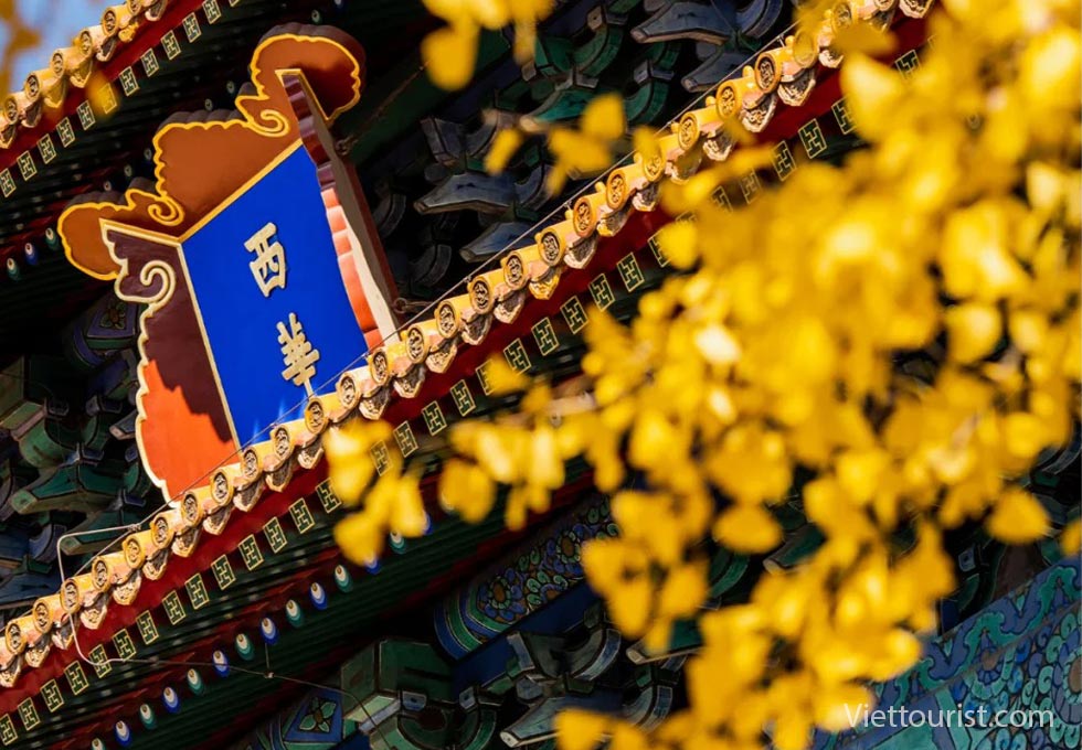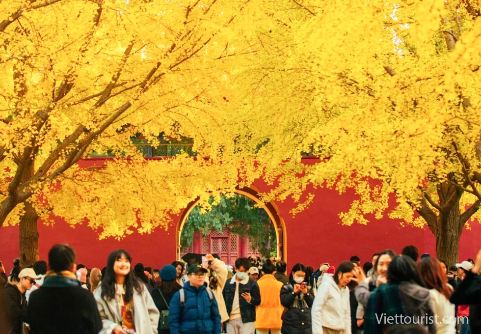 Khi những cơn gió heo may đầu tiên chạm ngõ, Bắc Kinh như khoác lên mình tấm áo mới, rực rỡ và đằm thắm. Khắp các con phố, đặc biệt là khu vực Điếu Ngư Đài hay các công viên, hàng cây bạch quả (ngân hạnh) đồng loạt chuyển sang sắc vàng óng ả, tạo nên khung cảnh đẹp như tranh vẽ. Dưới ánh nắng nhẹ nhàng, những chiếc lá vàng rơi lả tả trên nền gạch cũ kỹ, tạo nên một thước phim quay chậm đầy chất thơ.
