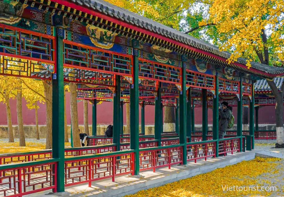 Nét đặc sắc nhất của mùa thu Bắc Kinh chính là sự hòa quyện tuyệt vời giữa thiên nhiên và lịch sử. Sắc vàng, sắc đỏ của lá phong, lá bạch quả tương phản nổi bật với những bức tường đỏ son uy nghi của Tử Cấm Thành hay Di Hòa Viên. Dạo bước trong khuôn viên cung điện xưa, ngắm nhìn bầu trời trong xanh và không khí dễ chịu, du khách có thể cảm nhận rõ ràng sự tĩnh lặng, an nhiên của một cố đô ngàn năm văn hiến.