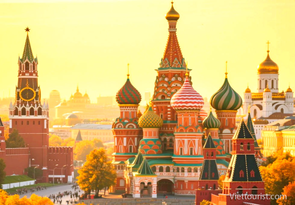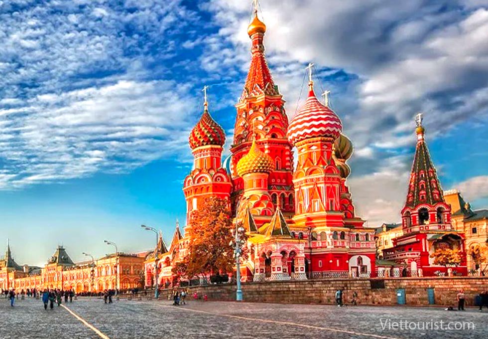 Nổi bật nhất chính là Nhà thờ Thánh Basil với những mái vòm hình củ hành rực rỡ sắc màu. Đây là điểm check-in mà du khách Viettourist cực kỳ yêu thích khi đến Moscow.