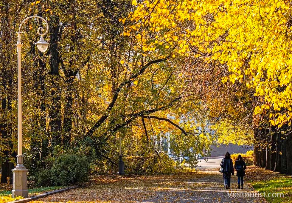 Đứng trên Sparrow Hills, du khách có thể chiêm ngưỡng toàn cảnh Moscow từ trên cao: dòng sông Moskva uốn lượn, sân vận động Luzhniki và nhiều công trình nổi tiếng. Du khách Viettourist thường đặc biệt yêu thích khoảnh khắc hoàng hôn, khi cả thành phố được nhuộm vàng dưới ánh nắng chiều.
