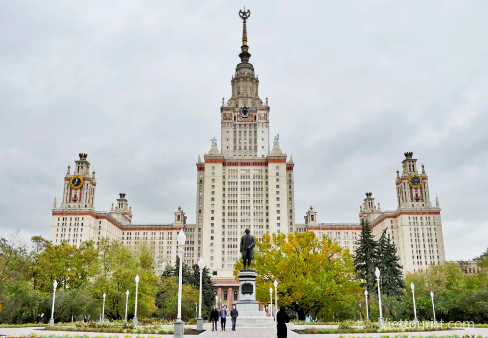 Ngay trên đỉnh đồi là Đại học Quốc gia Moscow – một trong những công trình biểu tượng của Nga. Đây cũng là điểm check-in được nhiều khách Viettourist yêu thích trong hành trình khám phá Sparrow Hills.