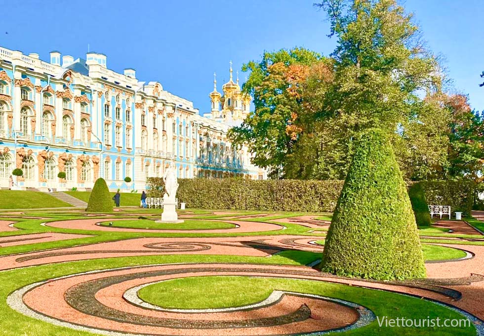 Vị trí: Cung điện Catherine (Екатерининский дворец) được đặt theo tên Hoàng hậu Catherine I, vợ của Peter Đại Đế. Đây là cung điện mùa hè của hoàng gia Nga, nằm ở thị trấn Tsarskoye Selo (nay là Pushkin, ngoại ô Saint Petersburg).