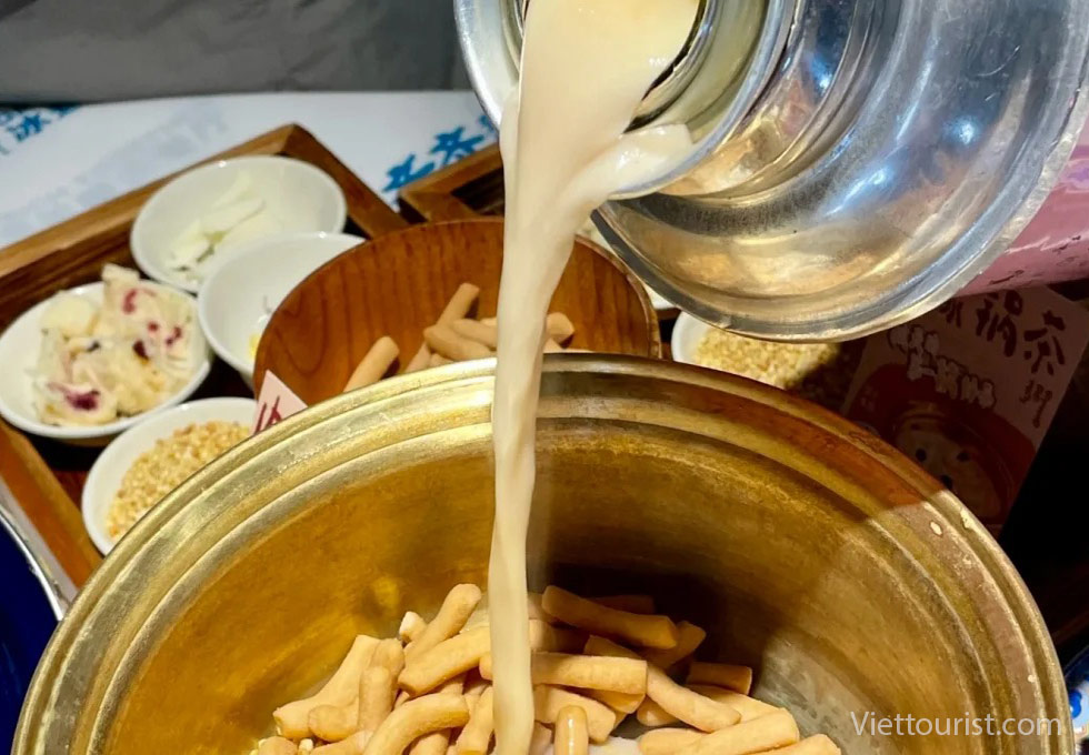 - Sau đó thêm sữa bò tươi (hoặc sữa dê, sữa ngựa) cùng một ít muối.