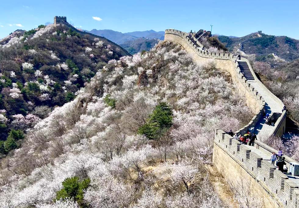 Hệ thống tường thành trải dài qua nhiều tỉnh thành, nhưng điểm ngắm hoa đào đẹp nhất nằm ở khu vực ngoại ô thành phố Bắc Kinh, Trung Quốc.