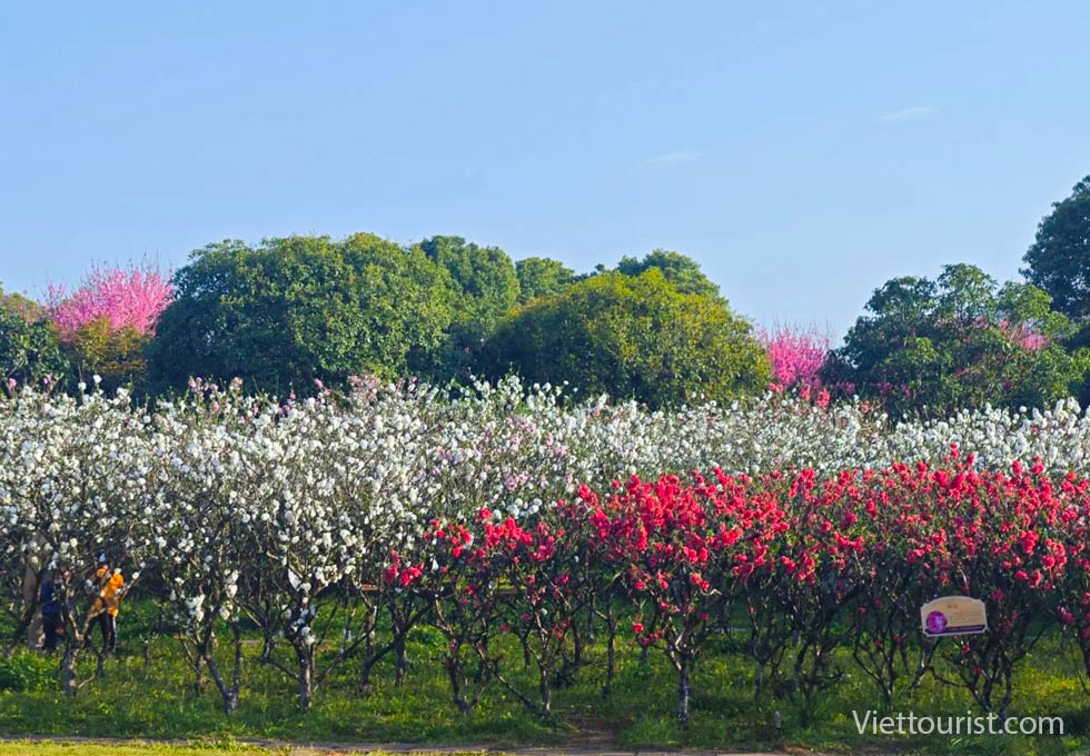 Quý khách tham quan Công viên Đông Hồ - Cảnh quan ở công viên Đông Hồ tươi đẹp và có sức hấp dẫn suốt cả bốn mùa. Mùa xuân với núi xanh nước trong, chim bay, hoa thơm. Mùa hè sang, du khách có thể chọn đi thuyền du ngoạn quanh hồ, ngắm nhìn sự bình lặng, mộng mơ của nơi đây. Mùa thu tới với rặng lá đỏ bao phủ khắp các ngọn núi cùng với hương thơm của hoa mộc tê thoang thoảng tràn ngận cả công viên Đông Hồ. Vào mùa đông, công viên lại đón chào những hình ảnh của đàn chim di cư bay lượn trên bầu trời, tuyết trắng xóa cùng vẻ đẹp của rừng hoa mận.