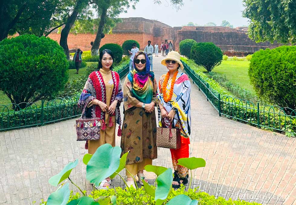 Trên đường đi đoàn ngắm DÒNG SÔNG SÔNG NI LIÊN THIỀN: tại nơi này Ngài nhận bát cháo sữa do nàng Sujata cúng dường và nhận thêm bó cỏ cát tường làm gối ngồi thiền từ một nông dân trong vùng, trước khi Ngài đi về cội Bồ Đề bắt đầu thiền định & nghe câu chuyện về nàng Sujata – người đã cúng dường bát cháo sữa cho Đức Phật khi ngài bị kiệt sức bên dòng NI LIÊN THIỀN.