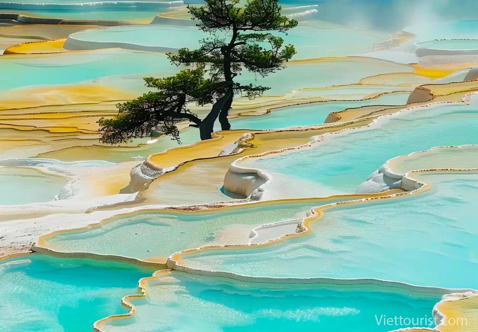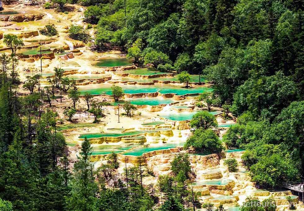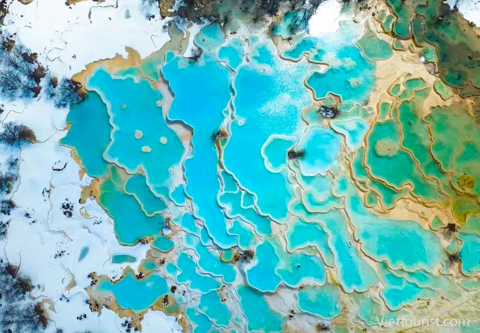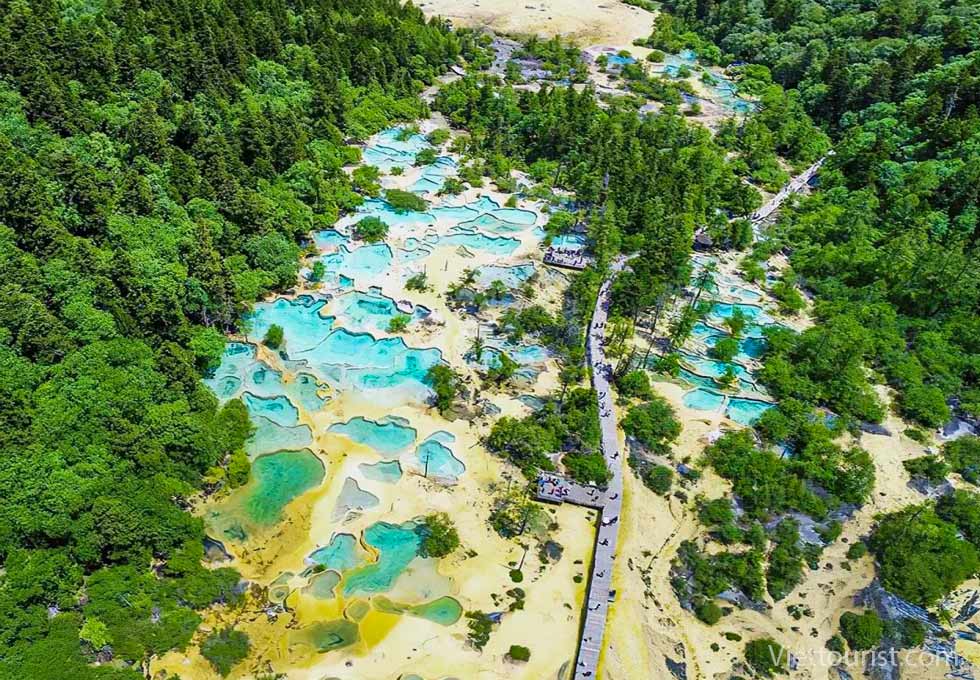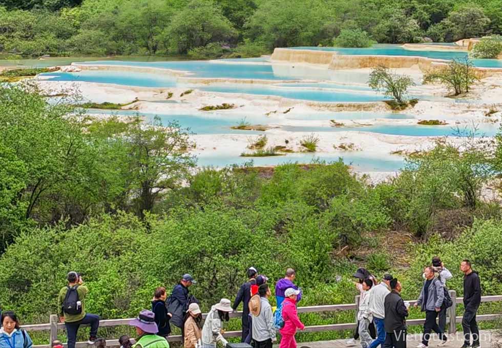 Đoàn khởi hành đến khu bảo tồn thiên nhiên Hoàng Long được UNESCO công nhận là Di sản thiên nhiên thế giới (1992), nằm ở độ cao tầm 3100m so với mực nước biển. Hoàng Long nổi tiếng bởi vẻ đẹp thiên nhiên hoang sơ của Hồ Nước Ngũ Sắc, Những Ngọn Núi Tuyết, những khe vực sâu và rừng thông vi vu trong gió. Sau khi di chuyển bằng cáp treo và đi bộ men theo con đường mòn uốn lượn chạy theo sườn núi. Quý khách sẽ bị mê hoặc bởi hàng ngàn hồ nước lớn nhỏ trong xanh như ngọc được tạo hóa sắp xếp từng bậc cao thấp như ruộng bậc thang, dưới ánh nắng mặt trời, quần thể hồ như tấm gương khổng lồ phản chiếu sắc màu lung linh huyền ảo. Quả không ngoa, nơi đây được mệnh danh là “nhân gian dao trì” với ý nghĩa hồ quý, hồ đẹp chốn nhân gian.