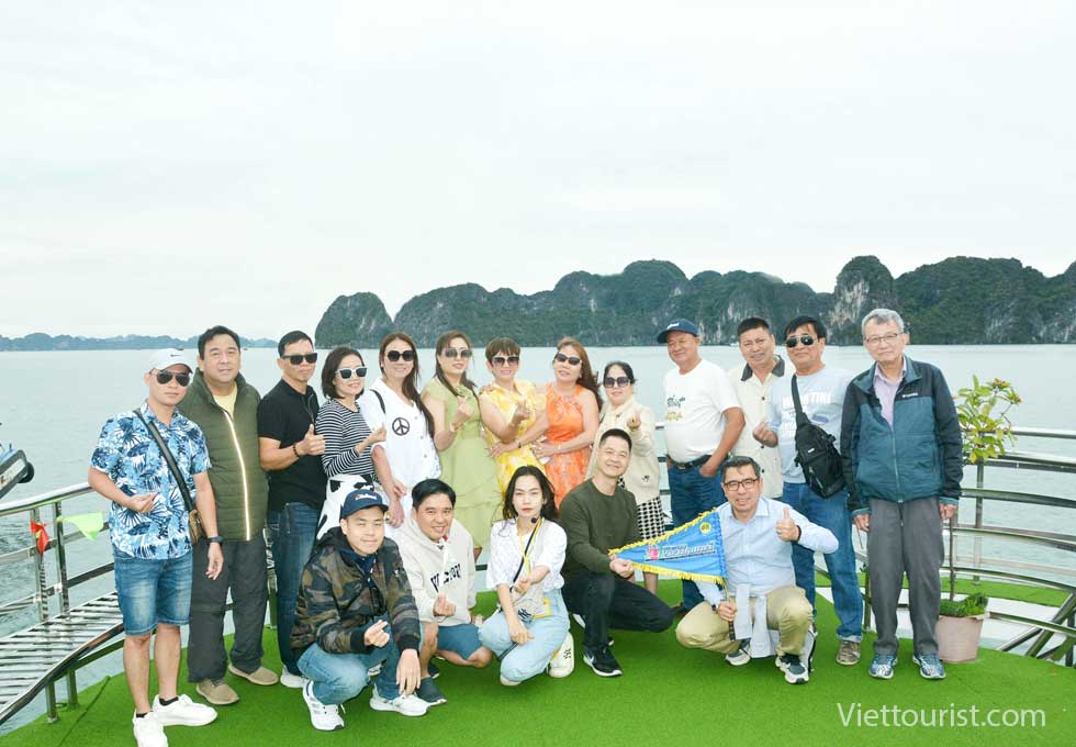 Đến giờ Xe và HDV đưa đoàn đến BẾN TÀU TUẦN CHÂU làm thủ tục lên thuyền. Đến giờ thuyền bắt đầu khởi hành đi theo hành trình 4 tiếng trên vịnh và đi qua những điểm nổi tiếng như: ĐỈNH LƯ HƯƠNG, HÒN TRỐNG MÁI, ĐỘNG THIÊN CUNG,...