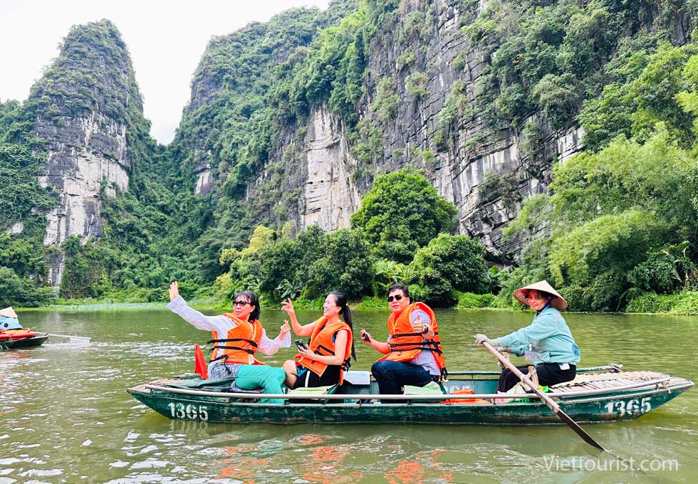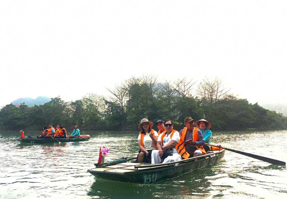 Đến giờ Xe và HDV đưa đoàn đến với KDL TRÀNG AN lên thuyền xuôi dòng Sào khê uốn lượn dưới chân những dãy núi đá vôi, quanh các rừng nguyên sinh và rừng lau đi qua 9 hang chính với những cái tên rất lạ như HANG SÁNG, HANG TỐI, HANG NẤU RƯỢU … Du khách được đưa vào lòng hang sâu thẳm, chiêm ngưỡng hình thù kỳ lạ của những nhũ đá trong hang và hòa mình vào khung cảnh thiên nhiên nơi đây.