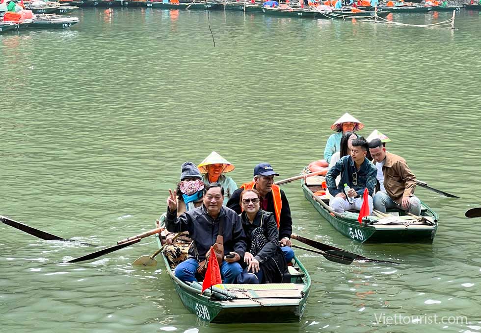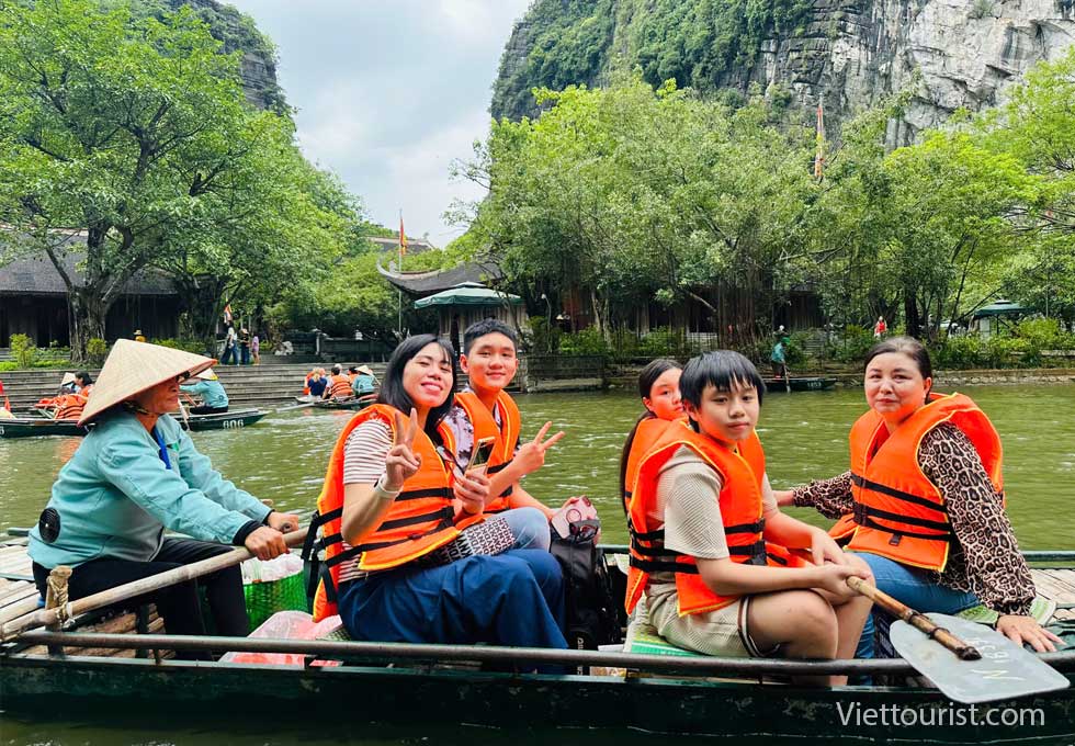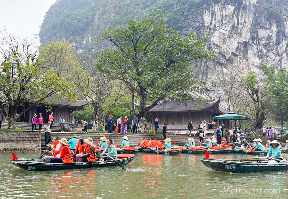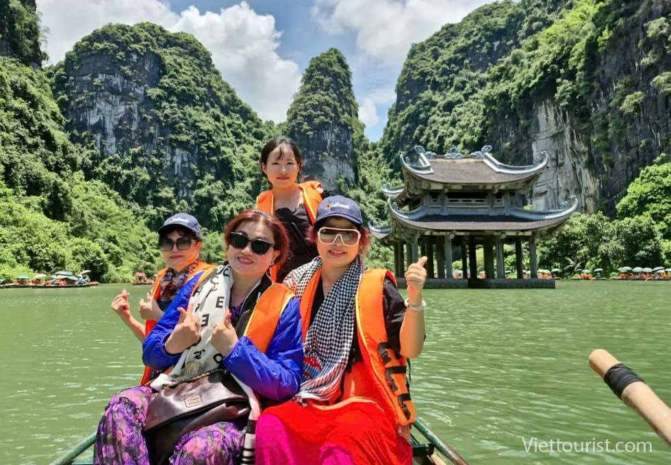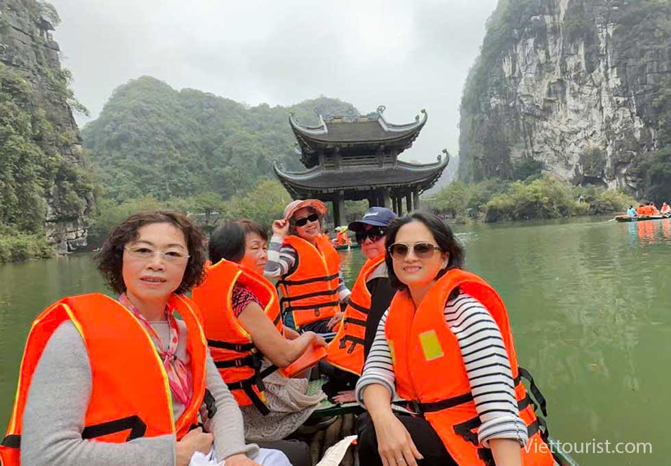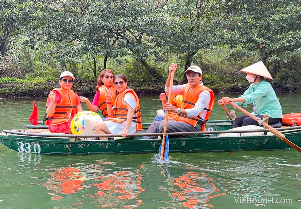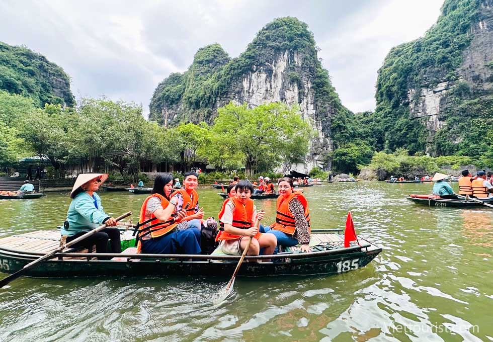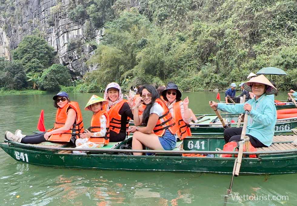 Đến giờ Xe và HDV đưa đoàn đến KDL TRÀNG AN lên thuyền xuôi dòng Sào khê uốn lượn dưới chân những dãy núi đá vôi, quanh các rừng nguyên sinh và rừng lau đi qua 9 hang chính với những cái tên rất lạ như HANG SÁNG, HANG TỐI, HANG NẤU RƯỢU … Du khách được đưa vào lòng hang sâu thẳm, chiêm ngưỡng hình thù kỳ lạ của những nhũ đá trong hang và hòa mình vào khung cảnh thiên nhiên nơi đây.