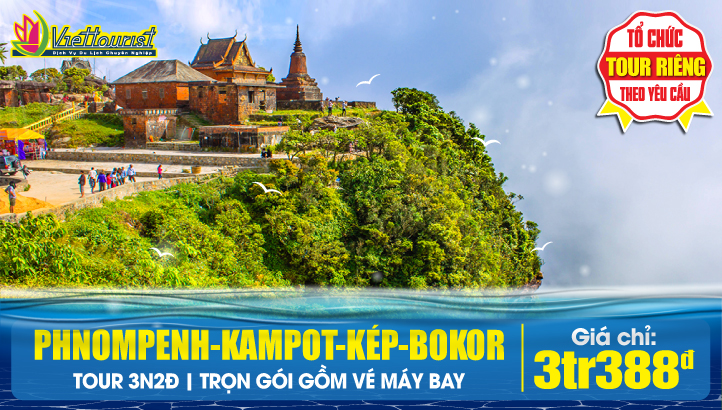 Tour du lịch Hè Campuchia - Thủ đô Phnompenh - Chùa Ngàn Phật - Kampot – Cao Nguyên Bokor – Biển Kép 3N2Đ