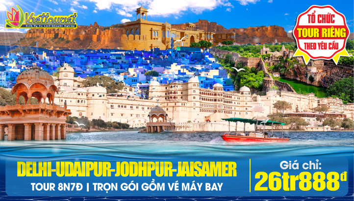 Du lịch Ấn Độ 8N7Đ | Khám phá các thành phố sắc màu UDAIPUR Thành phố Trắng - JODHPUR Thành phố Xanh - JAISALMER Thành phố Vàng - CHITTORGARH Pháo Đài Đỏ - BHILWARA - AHMEDABAD – Thủ đô NEW DELHI