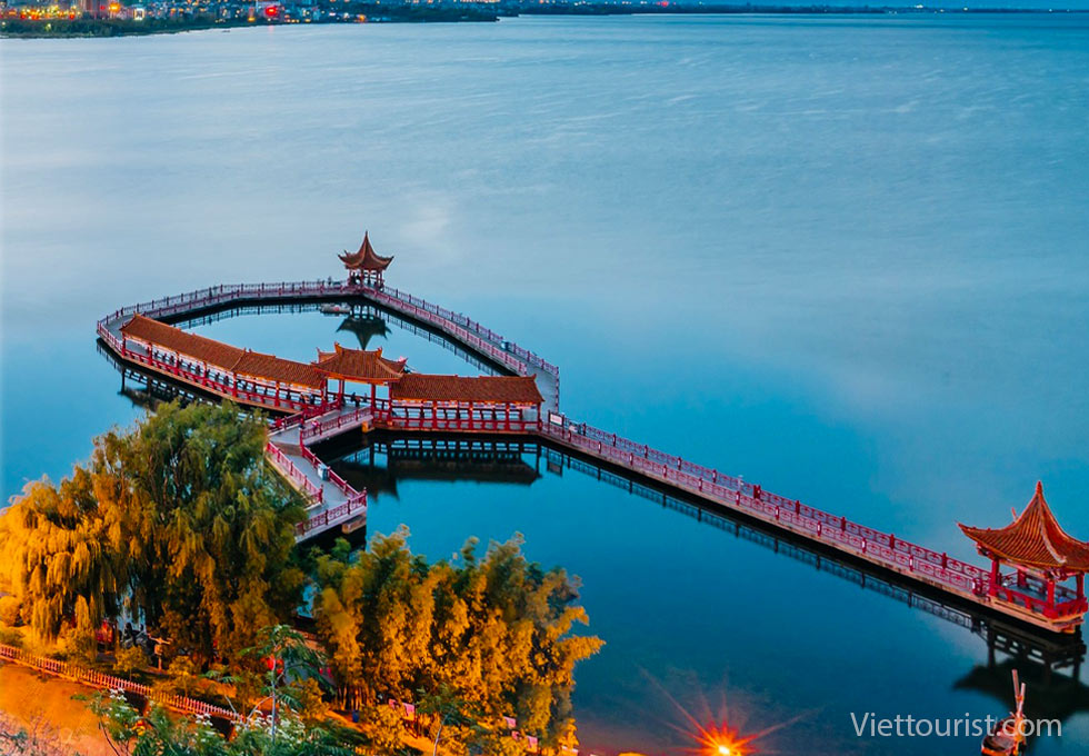 Đoàn tham quan, ngắm chim hải âu bên bờ đập hồ Điền Trì tại Côn Minh. Hằng năm, vào mùa đông, chim Hải âu từ vùng Siberia lạnh giá bay về đây trú đông, tạo nên cảnh tượng rất đẹp đẽ và sống động. Người dân Côn Minh và du khách từ các nơi về đây ngắm cảnh và chụp hình cùng chim Hải âu, mỗi năm thu hút hàng triệu lượt khách đến đây tham quan chụp hình vào dịp này (Áp dụng Đoàn khởi hành từ ngày 30/11/2023 đến hết tháng 02/2024)