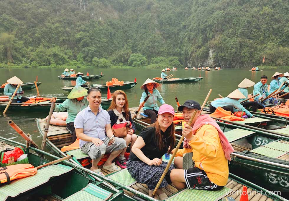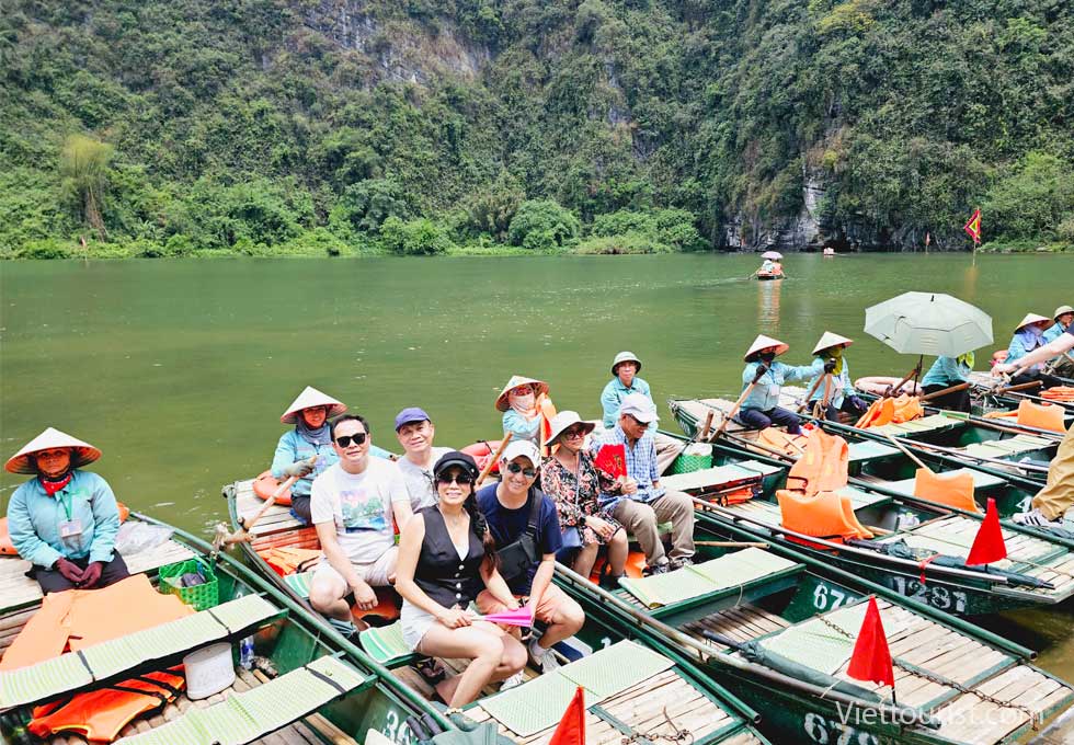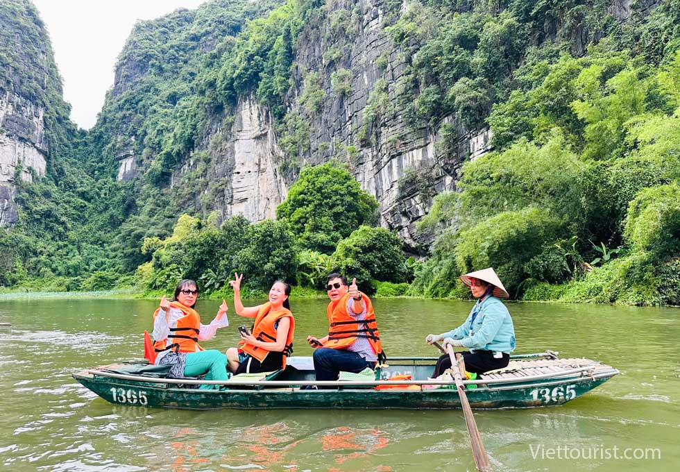 Đến giờ Xe và HDV đưa đoàn đến KDL TRÀNG AN lên thuyền xuôi dòng Sào khê uốn lượn dưới chân những dãy núi đá vôi, quanh các rừng nguyên sinh và rừng lau đi qua 9 hang chính với những cái tên rất lạ như HANG SÁNG, HANG TỐI, HANG NẤU RƯỢU … Du khách được đưa vào lòng hang sâu thẳm, chiêm ngưỡng hình thù kỳ lạ của những nhũ đá trong hang và hòa mình vào khung cảnh thiên nhiên nơi đây.