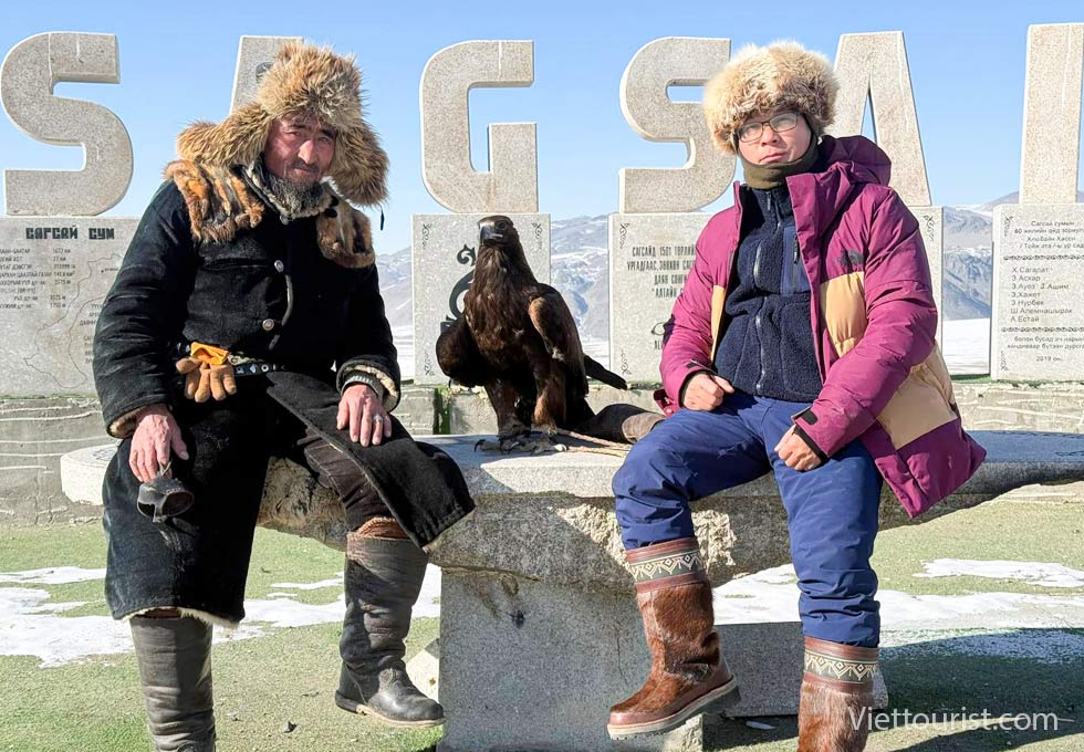 Đến Ulgii đoàn di chuyển đến làng Sagsai gặp gỡ các thợ săn đại bàng Kazakh và chụp hình.