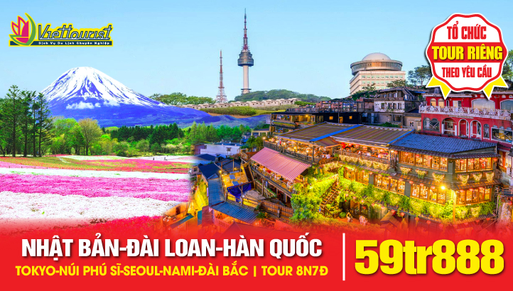 Tour du lịch NHẬT BẢN - HÀN QUỐC - ĐÀI LOAN 8N7Đ | Thủ đô Tokyo - Núi Phú Sĩ - Làng cổ Oshino Hakkai - Hồ Kawaguchi - Thủ đô Seoul - Đảo Nami - Đài Bắc - Thập Phần - Cửu Phần - Dã Liễu