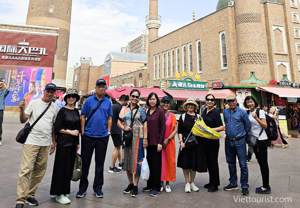 Chiều đến giờ hẹn đoàn khởi hành về Urumqi - Đến Urumqi, Đoàn tham quan chợ Quốc tế Tân Cương Nhị Đạo Kiều, được hoàn thành vào năm 2003. Là khu chợ lớn nhất thế giới tập trung các kiến trúc, văn hóa, nhạc cụ, ẩm thực của người Hồi giáo Duy Ngô Nhĩ, được mệnh danh là cửa sổ của Tân Cương, Trung Á và cả thế giới trên con đường Tơ lụa xưa kia. Quý khách mua sắm những loại ngọc nổi tiếng của vùng Tân Cương.