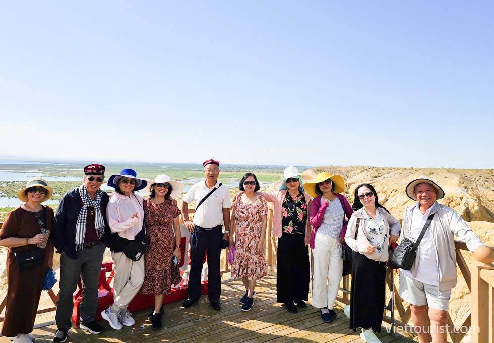 Đến nơi đoàn tham quan "Thành phố ma trên biển": nằm ở bờ đông của hồ Cát Lực (Jili Lake), ở cửa sông Ulungur Lake, thường được gọi là Đông Hà Khẩu, nơi có cả phong cảnh như bên bờ biển và sự quyến rũ của hẻm núi. Địa hình Yardang rất hiếm này chạy theo hướng bắc-nam và trải dài hơn mười dặm. Mặt đất nhô lên tạo ra những hính thù kỳ quái và bao bọc lấy Hồ Cát Lực, Tiểu Hải Tử. Năm tháng trôi qua, địa hình nơi đây bị mưa và gió làm xói mòn, một số trông giống như cung điện nguy nga, chùa tháp vươn tới bầu trời, những ngôi đền huyền bí và trang nghiêm, những con sư tử gầm lên tận trời, những vị Phật khổng lồ nhắm mắt và nhiều lâu đài khác nhau, sống động như thật, như được tạo nên bởi bàn tay khéo léo của người nghệ sĩ điêu khắc. Có cái nhô lên khỏi mặt đất bằng phẳng, sừng sững, thẳng tắp, đầy nam tính bất khuất, có cái lại liên tục, cao thấp đan xen, nhìn ngang trông như núi, nhìn dọc là đỉnh, thể hiện sự đa dạng, tương quan độc đáo. Đây là một thế giới muôn màu, những lâu đài, hồ nước do thiên nhiên kiến tạo từ hàng ngàn năm nay đã phụ thuộc lẫn nhau, nói lên sự uy nghiêm, hùng vĩ, bao la và mềm mại của thiên nhiên bằng ngôn ngữ hình tượng.