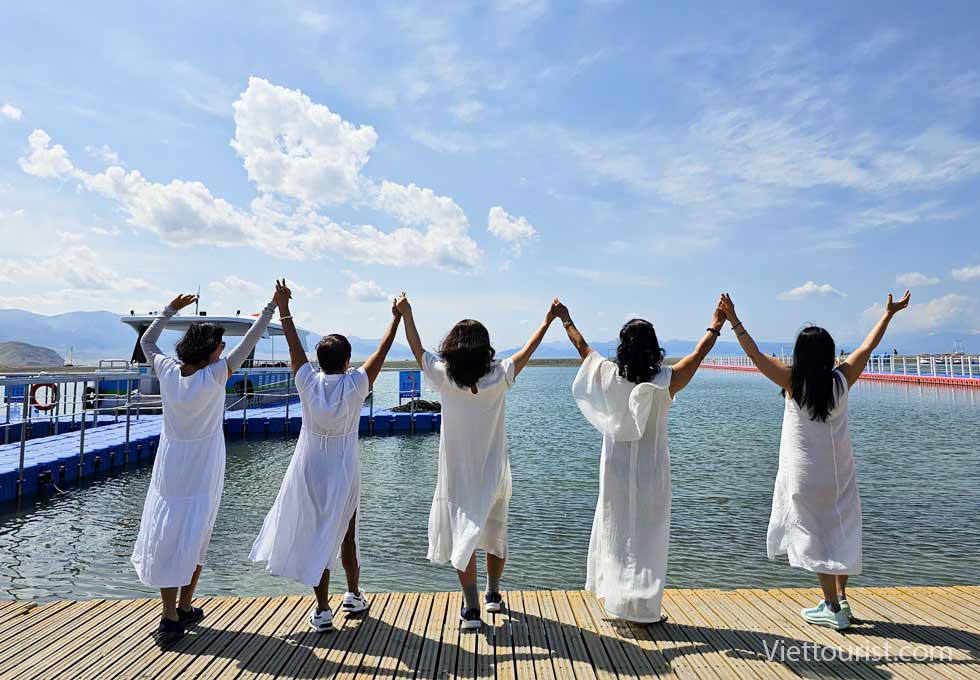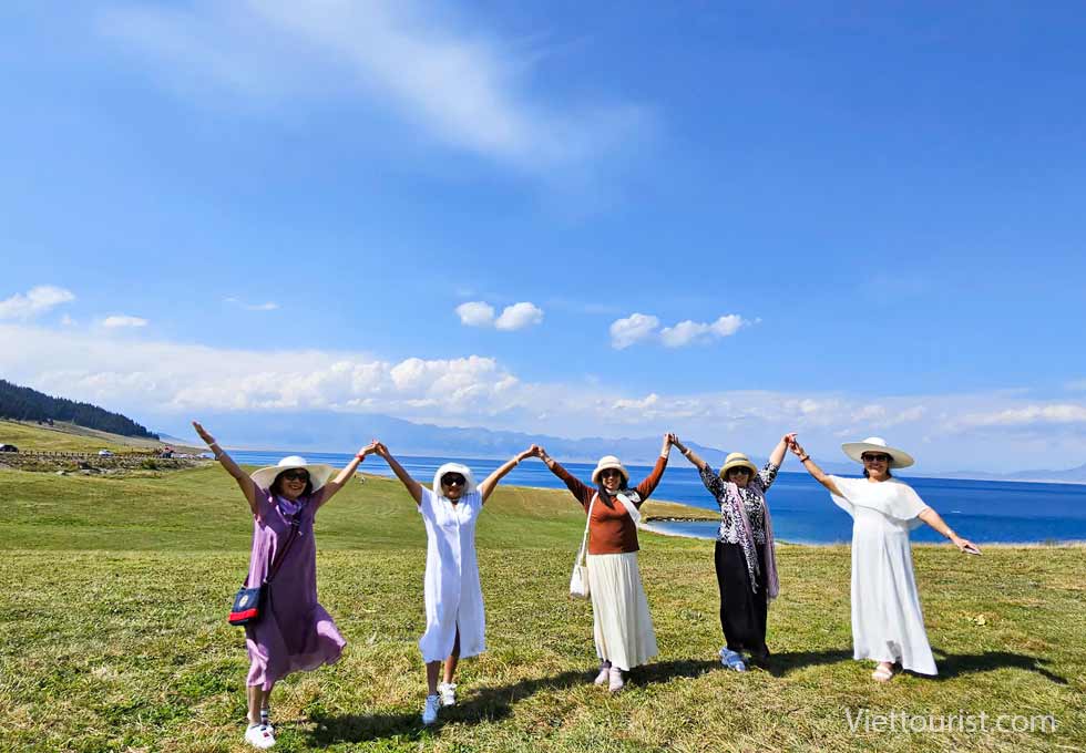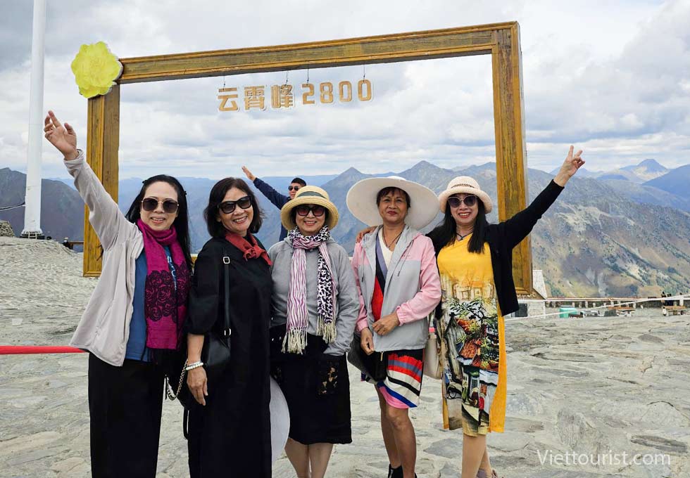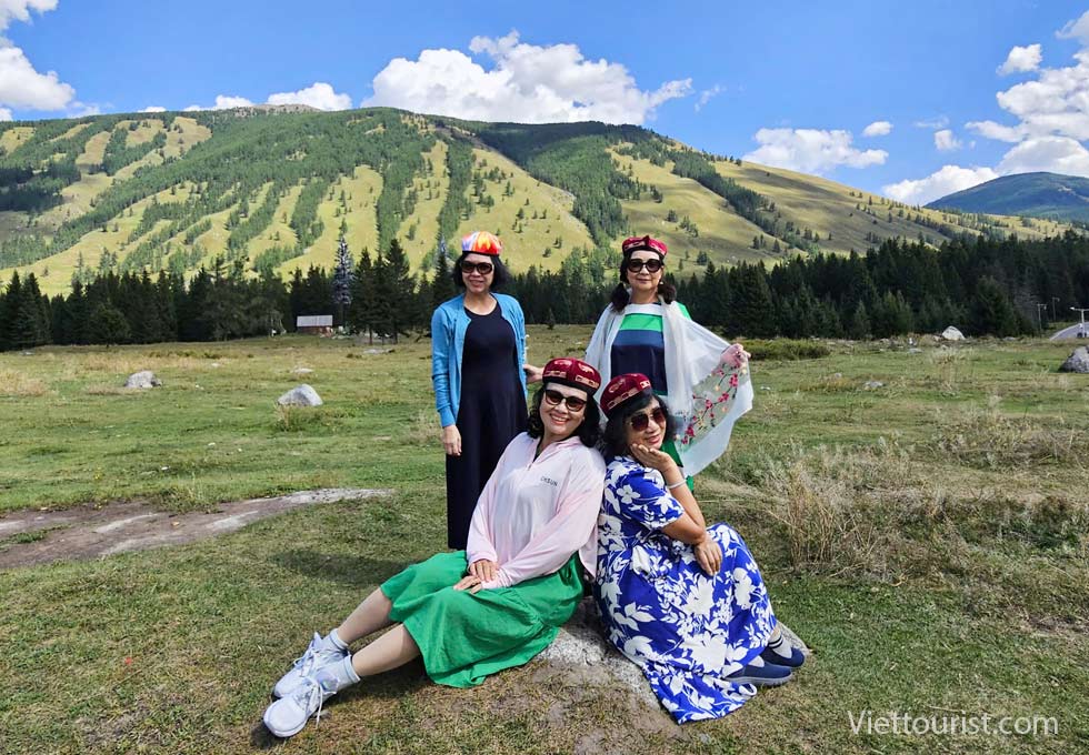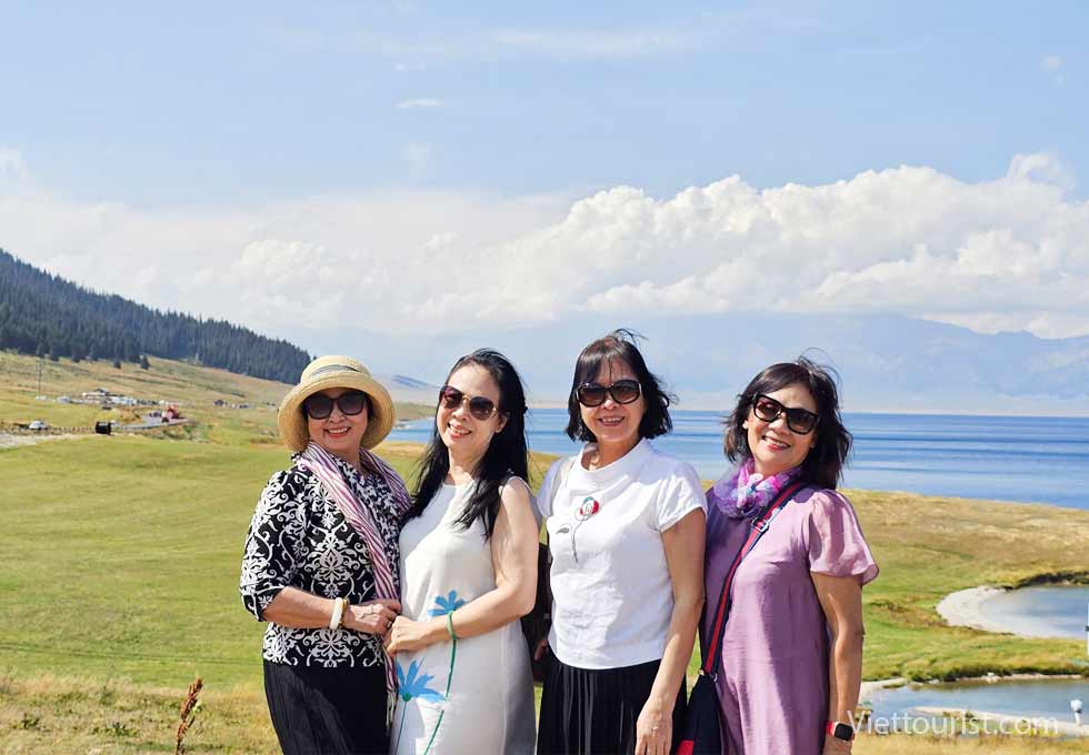 Đoàn ăn trưa trong khu du lịch và trải nghiệm khám phá 5 điểm du lịch gồm khu thắng cảnh Karajun Đông và Tây, khu thắng cảnh đỉnh núi tuyết Zhongtian, khu thắng cảnh rừng Thiên Lai và khu thắng cảnh hẻm núi Kuokesu. Đồng cỏ được ví như “tấm lưng trần của thiếu nữ” nằm ở khúc quanh giữa khu thắng cảnh và hồ cá sấu gần đó.