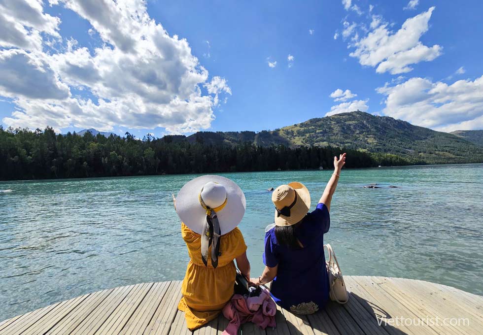 Hồ Kanas (tự túc chi phí ngồi thuyền): Vịnh Tam Đạo, nơi sâu nhất của hồ Kanas, là nơi ám ảnh về huyền thoại "Thủy Quái – quái vật hồ nước". Theo phán đoán của các nhà khoa học, thứ được gọi là "quái vật hồ nước" là một loài cá lớn màu đỏ có tên khoa học là cá hồi Zheluo. Trên tàu du ngoạn nhìn lại hai bờ, mặt hồ rất rộng, từng cơn gió thổi mát rượi, núi hai bên bờ lúc này như cao hơn, từng đám mây trên trời như lững lờ trôi trên mặt hồ. Hồ Kanas giống như một bức tranh sơn dầu ba chiều, khi du khách du thuyền trên mặt hồ, quay đầu nhìn lại, bạn sẽ lần lượt thấy những bức tranh sơn dầu tuyệt đẹp.