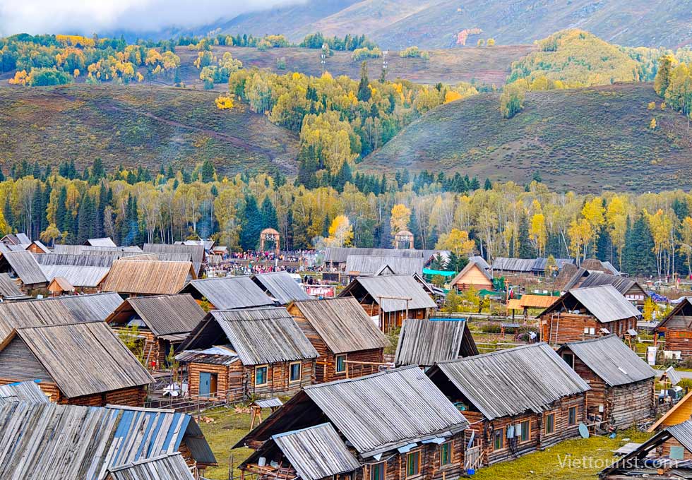 Sau khi dùng điểm tâm sáng, xe và HDV đưa đoàn đến Làng Hòa Mộc - Được Bộ Nông nghiệp Trung Quốc đánh giá là một trong "Mười ngôi làng đáng sống và có sức hấp dẫn nhất Trung Quốc" và đây là ngôi làng duy nhất ở Tân Cương giành được vinh dự này. Được mệnh danh là “ngôi làng số 1 Trung Quốc”, làng Hemu là nơi sinh sống tập trung của người Tuva và là ngôi làng lớn nhất trong số 3 ngôi làng Tuva duy nhất còn lại (làng Hemu, làng Kanas và làng Baihaba), với tổng diện tích là 3040 km2. Những ngôi nhà ở đây đều được làm bằng gỗ, mang phong cách truyền thống cổ xưa.