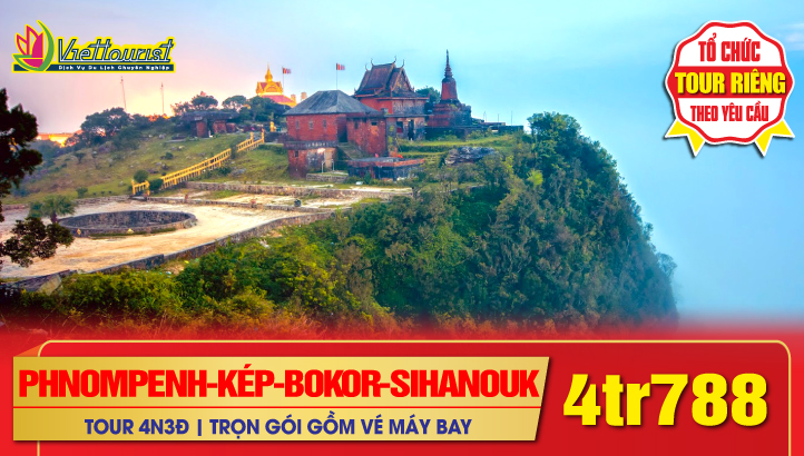 Du lịch Tết Nguyên Đán Campuchia - Phnompenh - Chùa Ngàn Phật - Biển Kép - Kampot – Ngủ đêm trên Cao Nguyên Bokor – Sihanouk Ville 4N3Đ