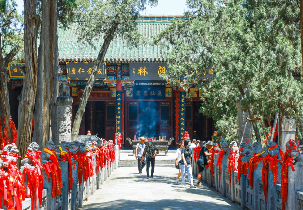 - Thiếu Lâm Tự - một quần thể kiến trúc rộng lớn với những công trình đáng chú ý như Tam Môn, Đại Hùng Bảo Điện, Tạng Kinh Các, Lục Tổ Đường, Đình Đạt Ma... trên diện tích khoảng 60.000m2. Thiếu Lâm Tự trong tiếng Hán có nghĩa là “ngôi chùa trong rừng gần đỉnh núi Thiếu Thất”, thuộc dãy Tung Sơn, thành phố Đăng Phong, tỉnh Hà Nam. Thiếu Lâm Tự là nơi sản sinh môn võ thuật Kungfu và Thiền Phật được UNESCO công nhận là di sản văn hóa thế giới. Đường lên Thiếu Lâm Tự phong cảnh rất hùng vĩ với núi cao, đèo sâu và rất nhiều cây tùng, bách bao quanh với các điểm tham quan như: Đại Hùng Bảo Điện là điện chính của ngôi chùa. Trong góc sân điện, du khách được chiêm ngưỡng những bia đá ghi công đức của những người có đóng góp cho ngôi chùa và phía trước là một cây ngân hạnh cổ thụ chi chít lỗ thủng. Tương truyền, đó chính là nơi các nhà sư Thiếu Lâm từng tập luyện Nhất dương chỉ (một môn võ bí truyền sử dụng lực bắn qua ngón tay để tấn công đối thủ) và những lỗ thủng chính là dấu vết còn lưu lại của Nhất dương chỉ. Tàng Kinh Các – một cái tên thường xuyên được nhắc đến trong các tiểu thuyết chưởng trường thiên. Đây là nơi lưu giữ các bộ kinh, sách quý giá về Phật pháp, võ thuật của Thiếu Lâm Tự. Lập Tuyết Đình – phòng của Đạt Ma sư tổ, người được xem là vị tổ của Thiền tông Trung Hoa. Sau khi Đạt Ma sư tổ đến chùa Thiếu Lâm, Ngài ngồi thiền 9 năm (cửu niên diện bích), sáng chế ra các phương pháp tập luyện võ công: Thập bát La hán chưởng, đây là môn võ kinh điển và tồn tại cho đến ngày nay. Đoàn tham quan điểm chính:
